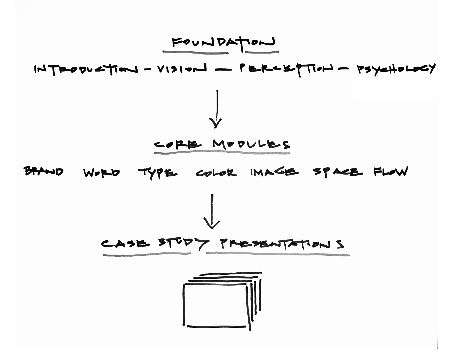 Gain a practical understanding of visual design, its many applications, and how it relates to other disciplines. Understand the interwoven nature of the core strands of visual design: Brand, Word, Type, Color, Image, Space, Flow.